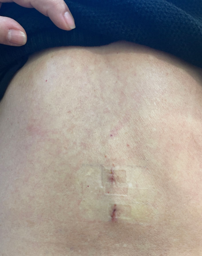 A cirurgia foi realizada por meio de duas pequenas incisões, pelas quais foi possível descomprimir todos os níveis comprometidos.
