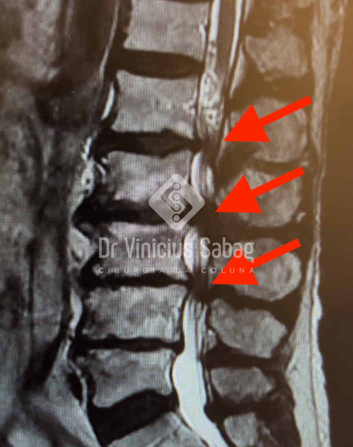Ressonância magnética evidenciando compressão dos nervos multinível.