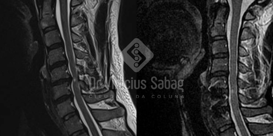 A partir de uma história clínica detalhada, exame físico minucioso e exames complementares — especialmente a ressonância magnética da coluna cervical — foi realizado o diagnóstico de mielopatia cervical.