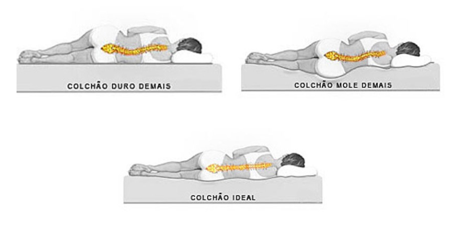 Durante o sono, o corpo precisa de apoio e alinhamento. Um colchão muito mole faz com que a coluna “afunde”, criando desalinhamento e sobrecarga em pontos específicos. Já um colchão excessivamente duro pode gerar pressão excessiva nas articulações e desconforto muscular.